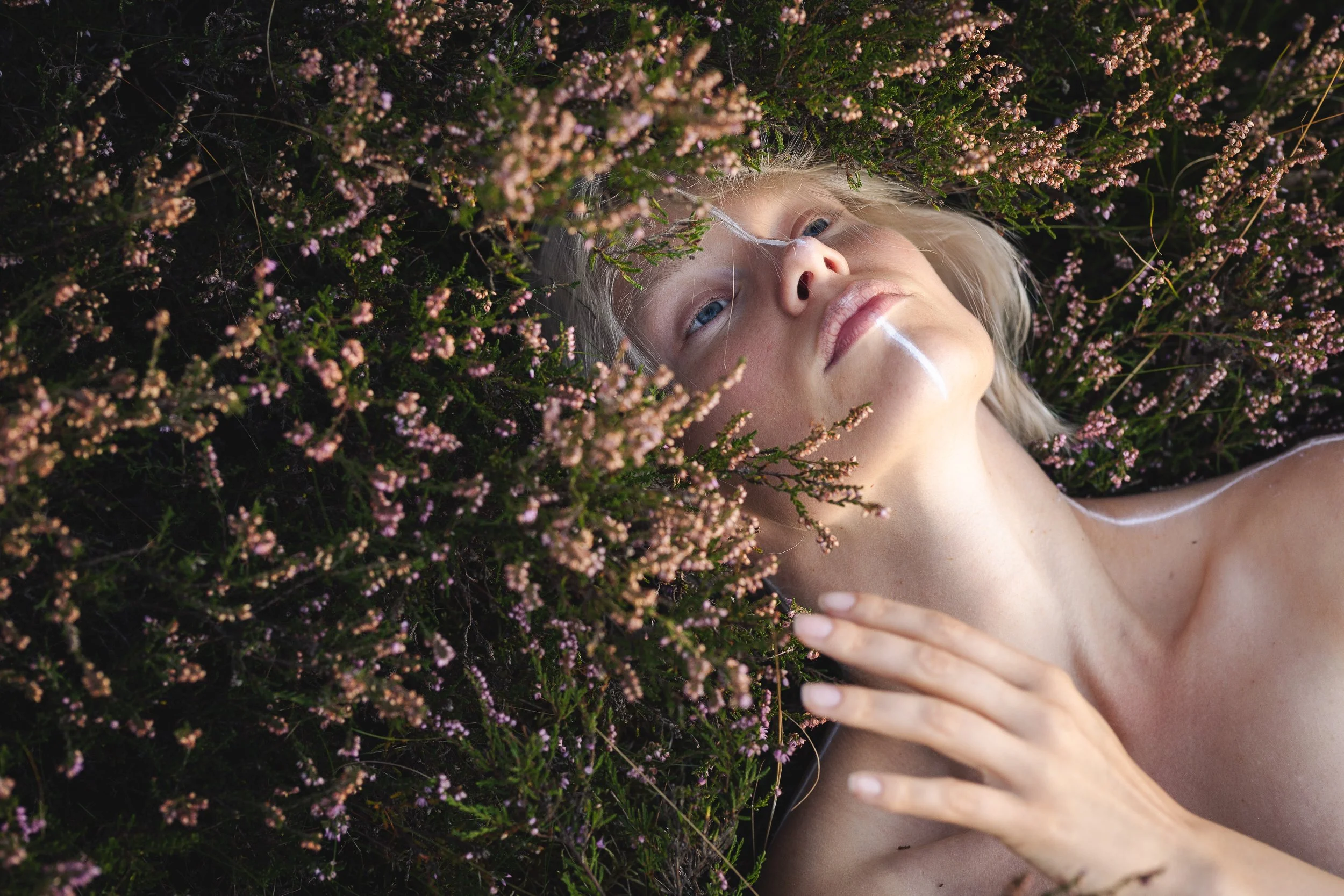 Looking at my surrounding there seems to be a counter reaction to this, an eagerness to reconnect more deeply to nature by immersing more fully through smell, touch and sound. Being a part of nature instead of standing on the sidelines. These images explores this desire to reconnect by consciously taking nature in. Re-drawing our path of relating by placing lines in the face. Playing with the notions of human and (staged) nature. Exploring it. Becoming a part of it. Fully immersing into nature.