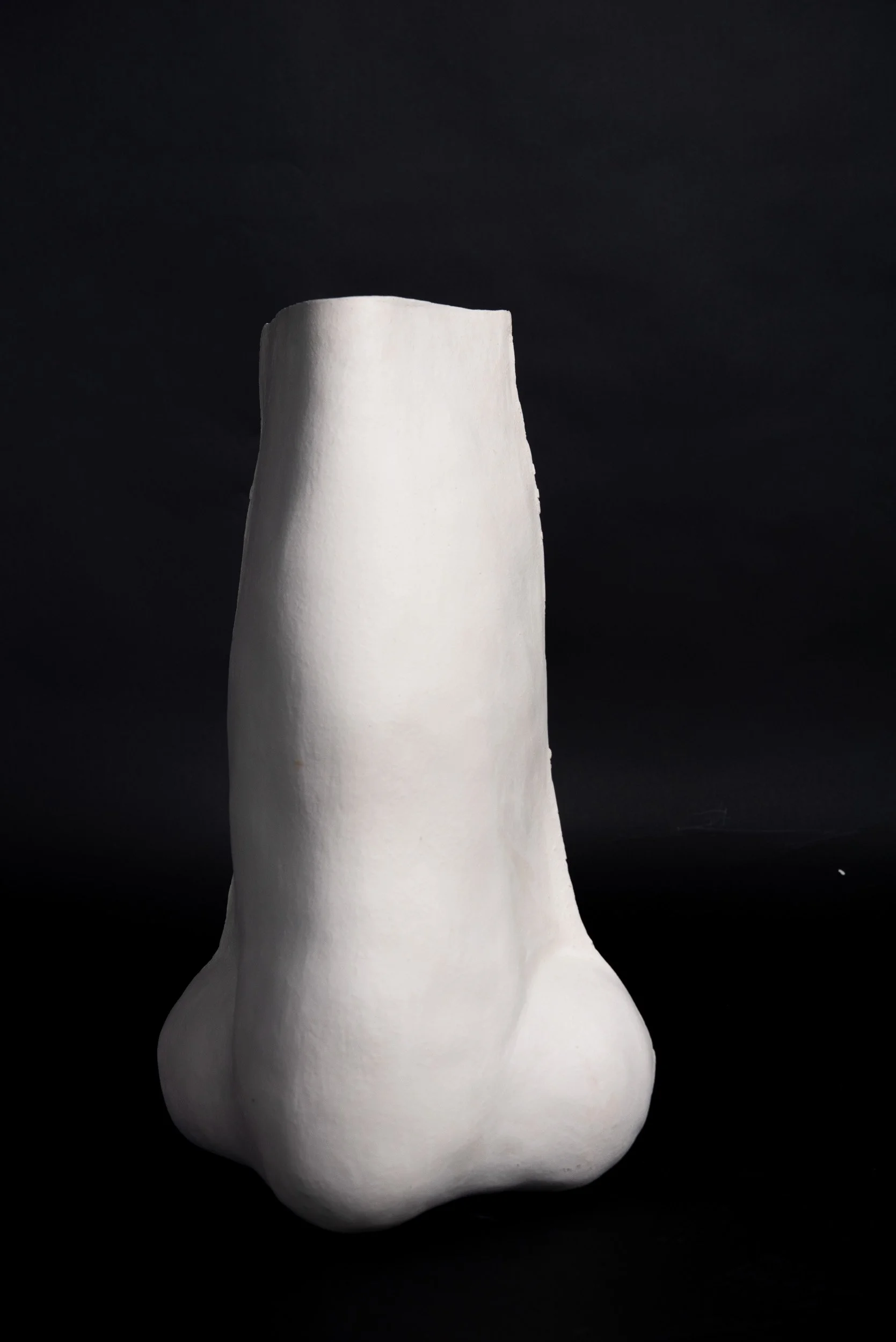 Zooming in, isolating and enlarging the nose. Creating an almost abstract form of something so familiar as the nose. The purpose of this sculpture was to investigate when is a shape still a nose. And also because of the enjoyment of being surrounded by enlarged, slightly surreal sculptures. 59cm x 29cm x 21cm