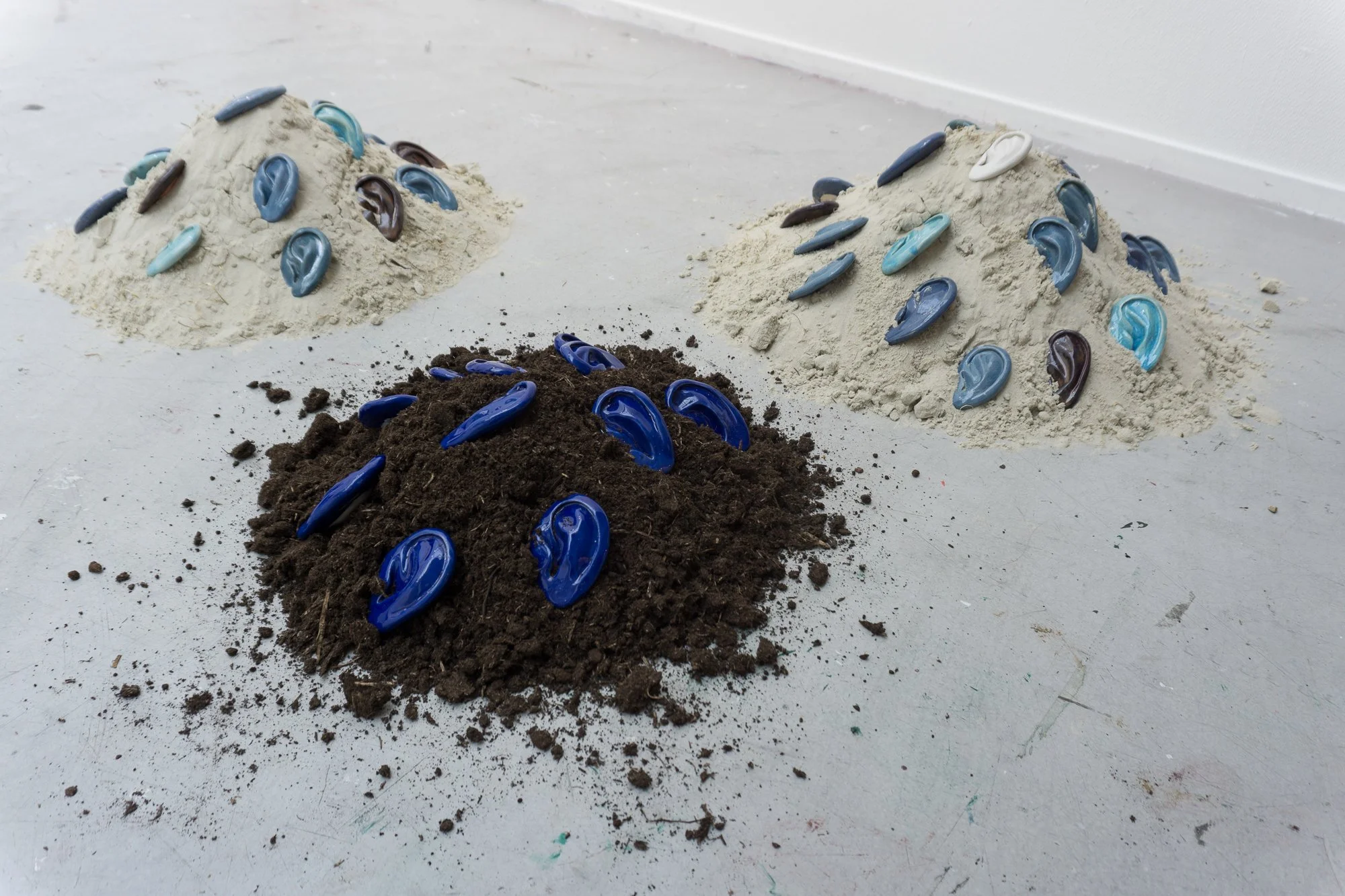 Connecting to the soil, fully immersing into it, only sticking the ears out to listen. Grouping together, separating. Listening to the surrounding. A visualization of reflecting on our role as creatives, how we do it now and what shifts can be made.